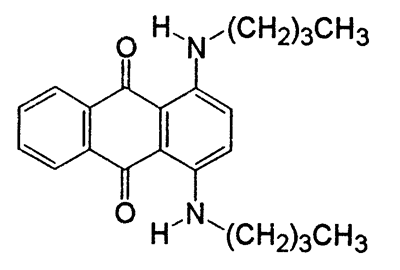 Solvent of Oil Blue 35 is a blue anthraquinone dye used for colouring alcoholic and hydrocarbon based solvents, including oils, fats, and waxes. It is used also in lacquers and inks. In some countries, it is used as a fuel dye. It is also used in some blue colored smoke formulations. In microscopy, it is used as a staining dye.