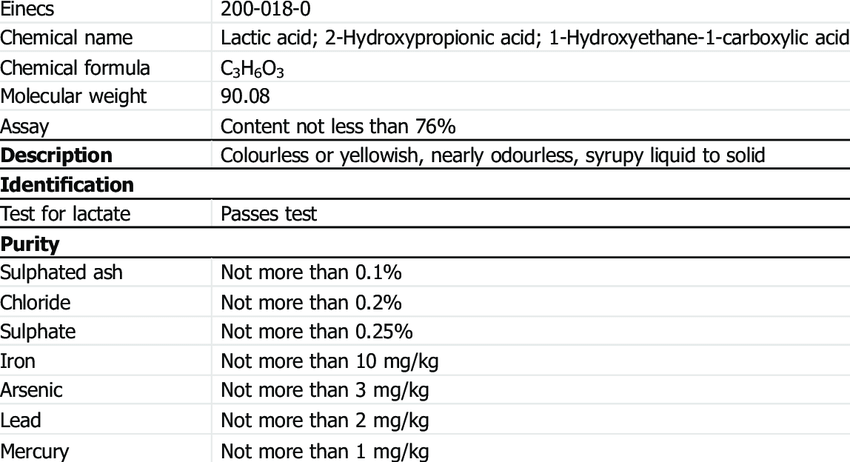 CAS 79-33-4 EC number 200-018-0 Appearance colorless to yellow odorless syrupy liquid Purity N/A