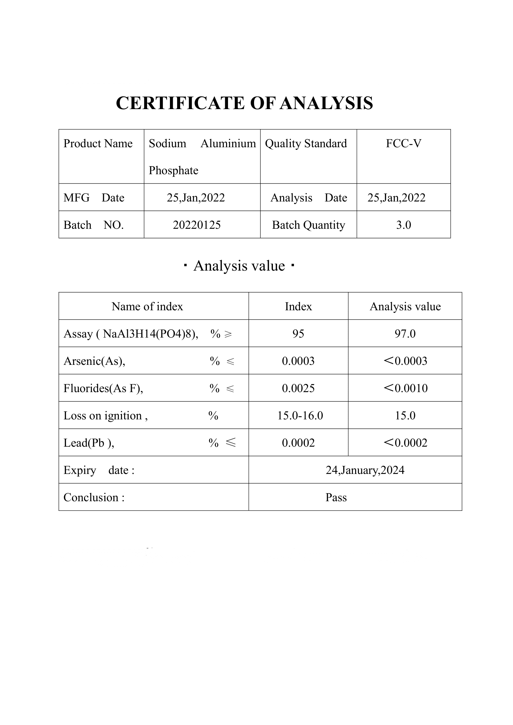 SALP is a white, odourless powder, Insoluble in water, Soluble in hydrochloric acid, which complies with the specifications of FAO/WHO-1992, FCC and EC Directive for food additives.As a food additive it has the E number E541.SALP has two forms: an acid form used in baking powder, and an alkaline form used as an emulsifier in processed cheese. It is used in baking powder because most of its action takes place at baking temperatures, rather than when the dough or batter is mixed at room temperatureor batter is mixed at room temperature