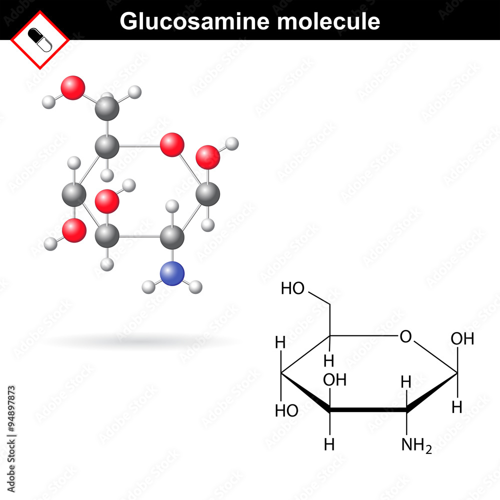 Glucosamine (C6H13NO5) is an amino sugar and a prominent precursor in the biochemical synthesis of glycosylated proteins and lipids. Glucosamine is part of the structure of the polysaccharides chitosan and chitin, which compose the exoskeletons of crustaceans and other arthropods, as well as the cell walls of fungi and many higher organisms. Glucosamine is one of the most abundant monosaccharides.It is produced commercially by the hydrolysis of crustacean exoskeletons or, less commonly, by fermentation of a grain such as corn or wheat.