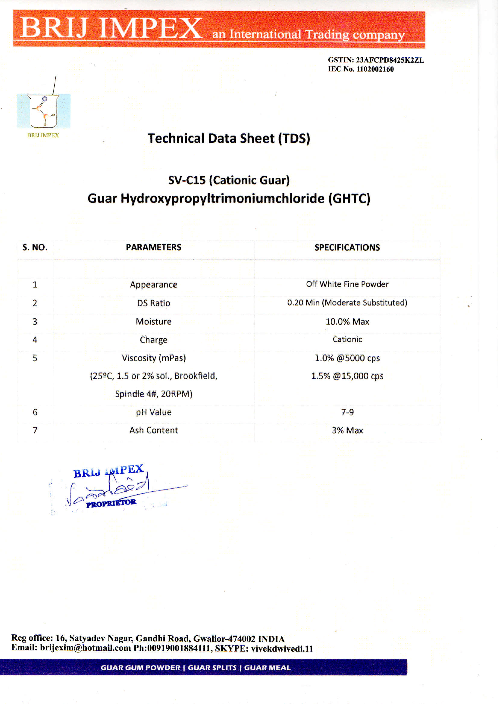 cationic guar gum ( guar hydroxypropyltrimonium chloride)